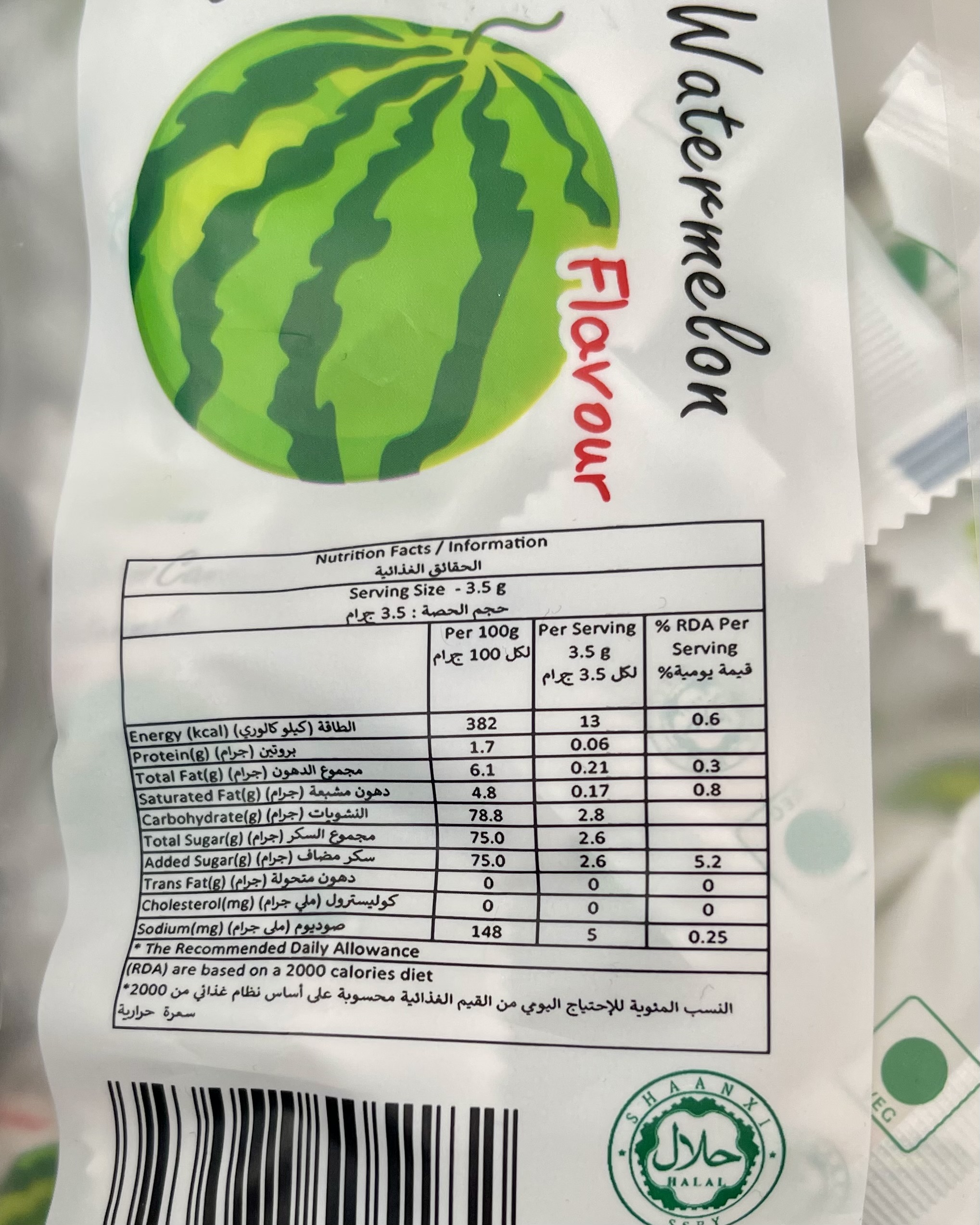 طعم متعادل، شیرینی مناسب و ظاهر جذاب این شکلات هندوانه باعث شده تا یکی از پرفروشترین محصولات برند Haoliyuan باشد. اگر به دنبال یک تافی میوهای خاص و متفاوت هستید، این محصول دقیقاً همان چیزی است که دنبالش میگردید؛ ترکیبی از تازگی، لذت و انرژی در هر لقمه. ( این شکلات هندوانه خارجی اورجینال بوده و محصول کشور چین است )